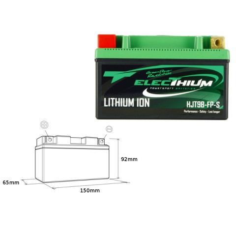 Літій-іонний акумулятор ELECTHIUM з індикатором заряду HJT9B-FP-S (150x65x92) (YT7B-BS, YT9B-BS) (Вага 0,7 кг)