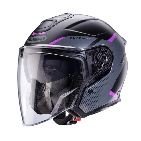 АКЦІЯ CABERG ВІДКРИТИЙ ШОЛОМ JET FLYON II BOSS КОЛІР ЧОРНИЙ МАТОВИЙ/СІРИЙ/ФУКСІЯ (ЯСКРАВИЙ ВІДТІНОК РОЖЕВОГО) РОЗМІР S