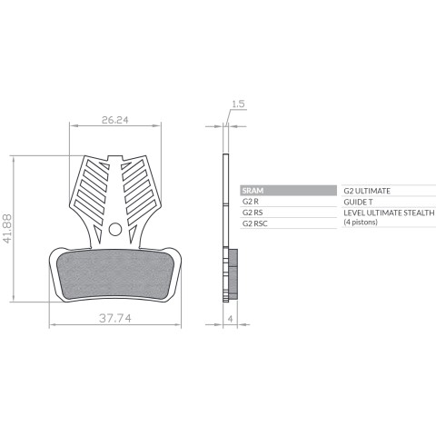 Гальмівні колодки Brenta Bike органічні Sport з радіатором для Avid XO Trail, Elixir 9 Trail, Elixir 7 Trail, Sram Guide Ultimate, RSC, RS, R, T