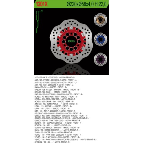 Гальмівний диск передній NG DAELIM 125 '00-'08, PEUGEOT 125 SUM '09-'12, задній HONDA CRM 125 '91-'98 (220X58X4) (3X85MM) WAVE
